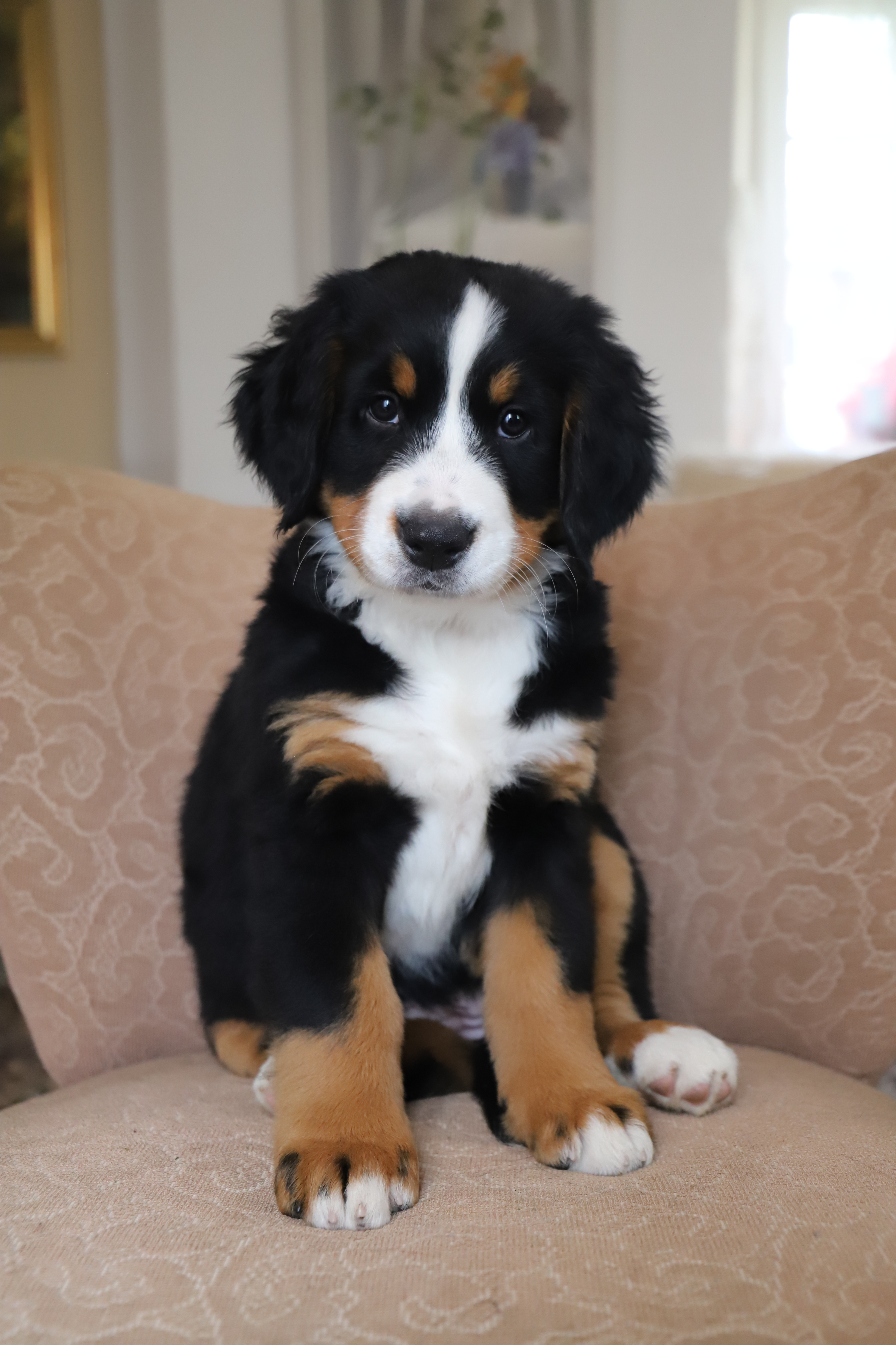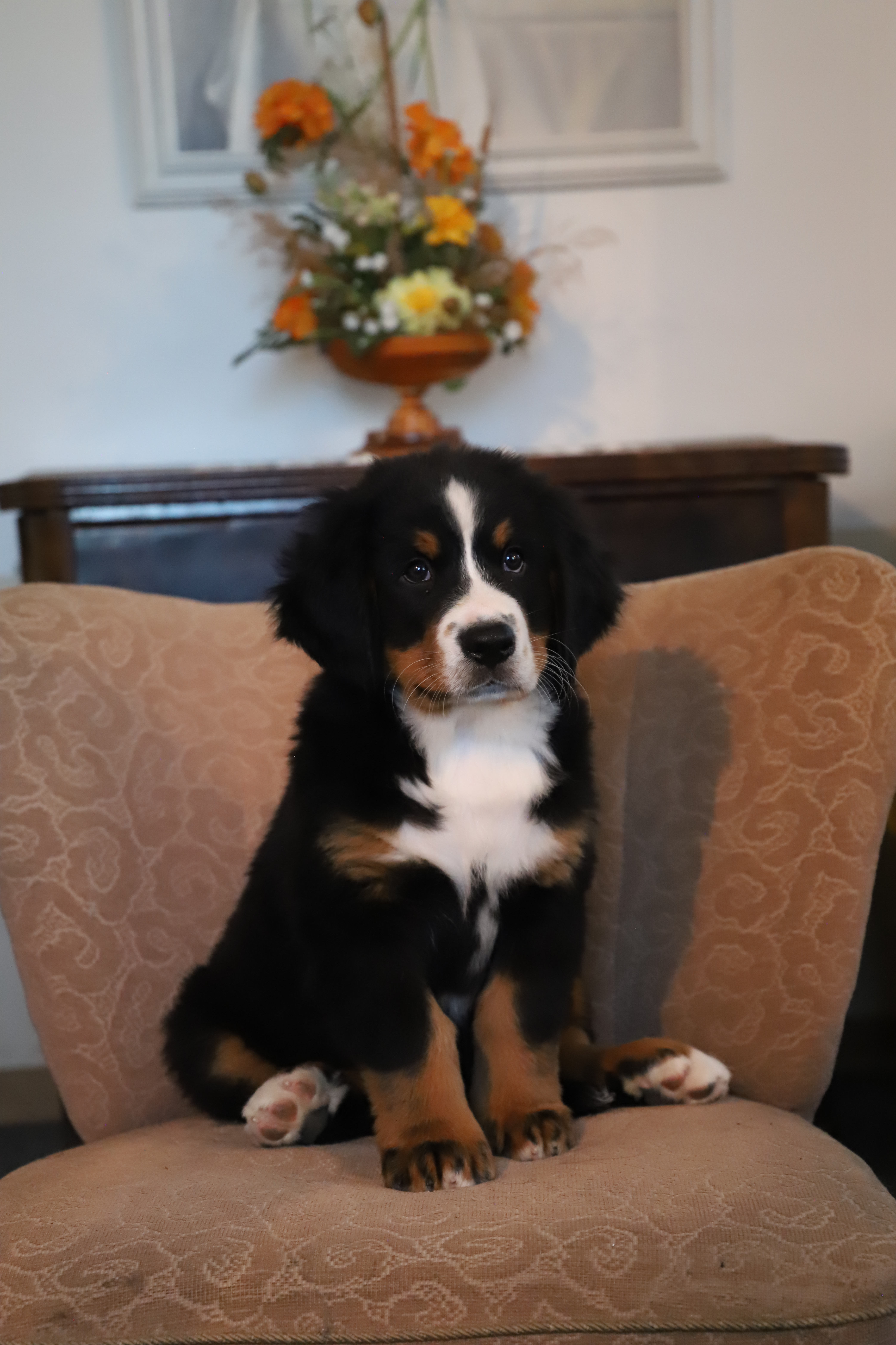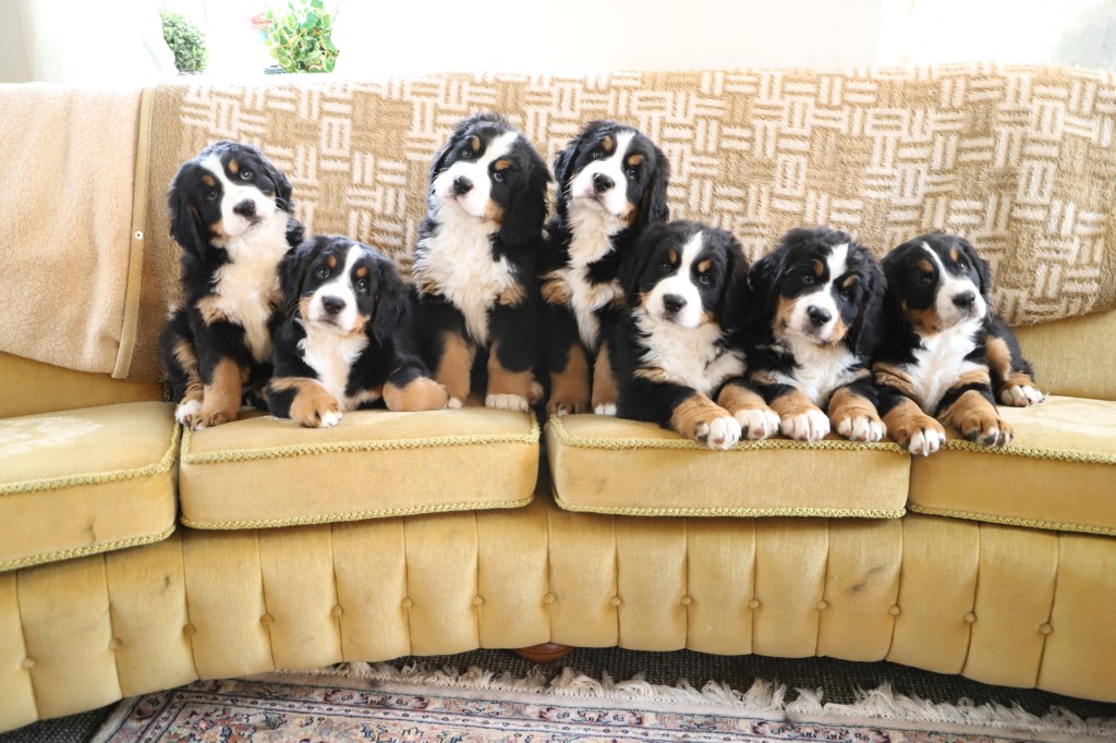 Zur Zeit leben in unserer Familie zwei gekörte und eine halbwüchsige Berner Sennenhündin.